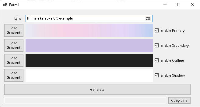 Four Colors (in HEX code) or Gradients (in PNG) for Lyrics: Primary/Sung, Secondary/Unsung, Outline, and Shadow